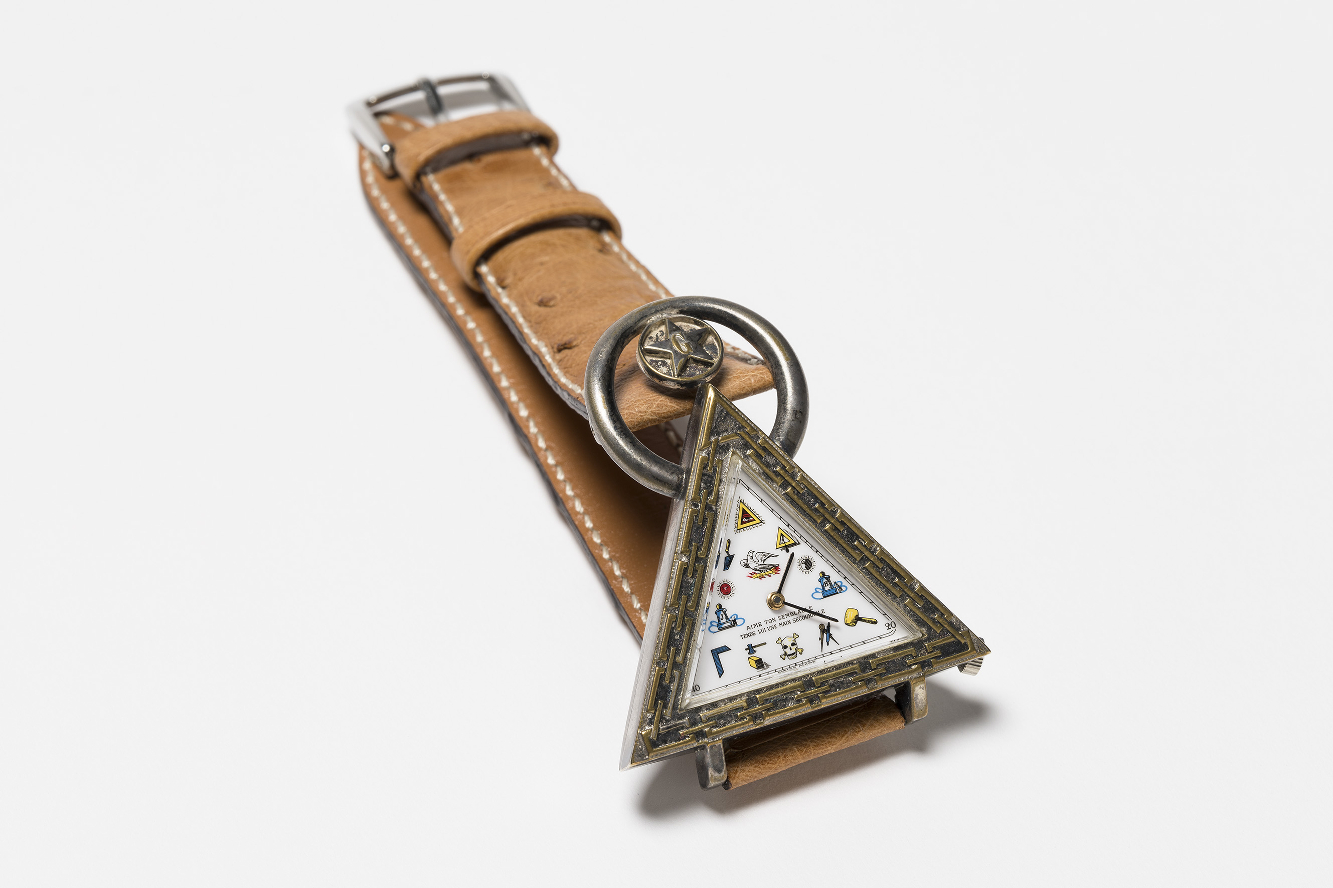 SujetGastspiel Uhrenmuseum Winterthur: «Drei Freimaureruhren aus dem Uhrenmuseum Beyer Zürich»; Silberne Freimaurer-Armbanduhr, um 1930; Leihgabe: Uhrenmuseum Beyer Zürich